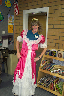 One of the activities we had the kids do during #2's class party was go on a scavenger hunt to find a costume for their teacher. Mr. Heath was a great sport and did Robyn's prom dress proud!